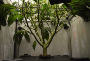 Purple Berry Muffinz is uitgebloeid en doet het in haar laatste dagen op water alleen. Zo ‘spoelt’ het chlorofyl weg en blijft heerlijke wiet over.