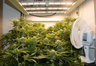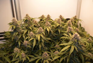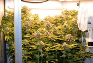 Omdat de wietplanten buiten omwaaien heeft Dokter Groen er maar twee binnen gezet. Runtz x Layer Cake staat sinds deze week weer in bloei.