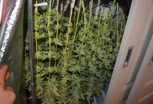 De Sneeze wietplant van Dokter Groen was na het weekend zó groot, dat ze voor straf (en om snel de bloeifase op te wekken) in het donker staat.
