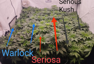 Seriosa, Warlock en Serious Kush gaan de tweede helft van hun bloei in. Ze krijgen prachtige toppen waar Claude deze week extra mooie foto’s van maakte.