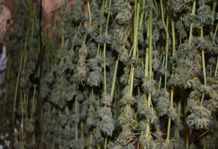 Na negen weken bloeien zijn Claude’s ‘slaapmiddelen’ tijdens de feestdagen geoogst. Ze hangen ondersteboven te drogen volgens de 16/60 methode.