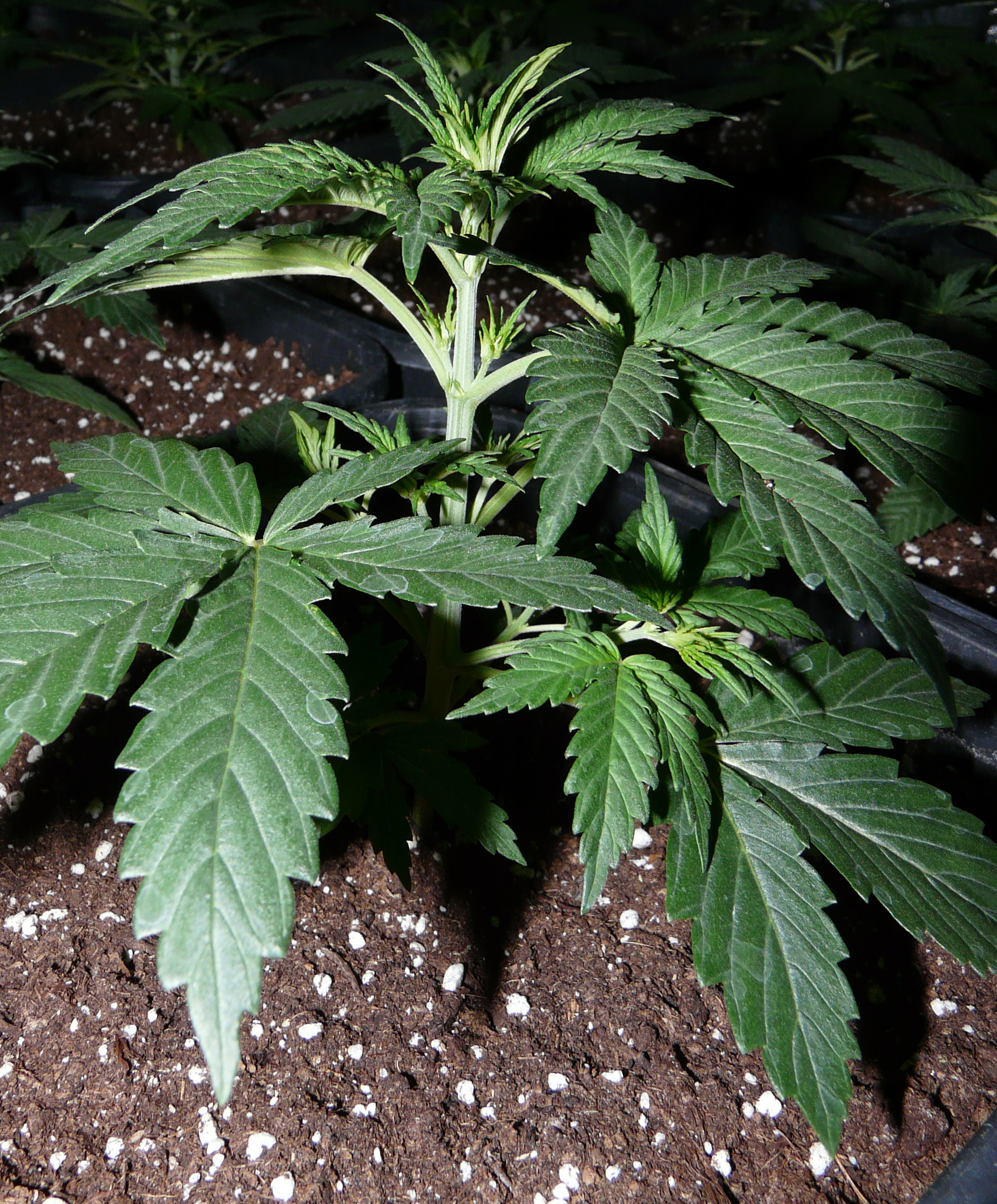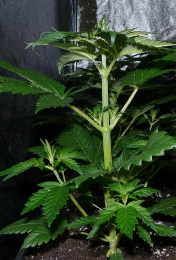 De planten van Master Kroblo gaan lekker, ze staan nu twee weken in 11 liter potten onder 12 uur licht.