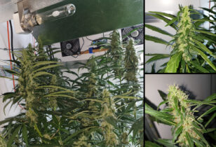 Willies wietplanten zijn de afgelopen weken hard gegroeid én gebloeid. In de G-Kit XL groeien ze al boven het armatuur van zijn kweeklamp uit!