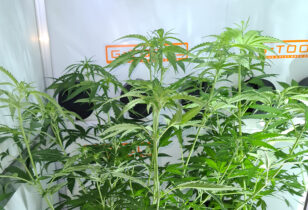 Week 11 voor de Mohammed wietplanten van Willie Wietman. Nu de bloei is doorgebroken groeien de planten (en toppen!) allemaal op gelijke hoogte…