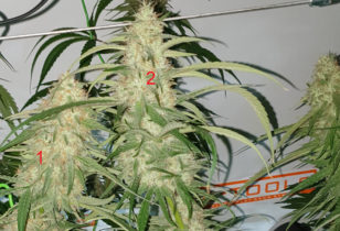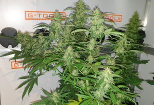Willie Wietman – Bloeiweek #7 is begonnen; één van de toppen lijkt per ongeluk ge-bud-swelled; in de Space Bucket staat een bonsai-Haze in bloei.