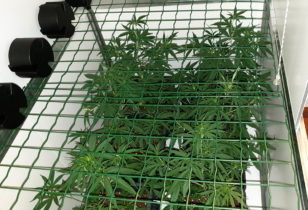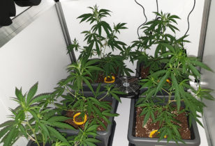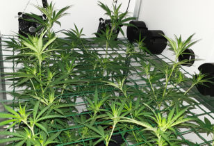 Willies wietplanten bloeien (!) en maken een groeispurt door. Om ze in bedwang te houden worden ze stressloos getraind met binddraad.