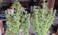 Buitenwiet-correspondent Swer ziet de autoflowers in de kas op zijn dak, enorm groeien en traint ze om meer toppen te kweken.