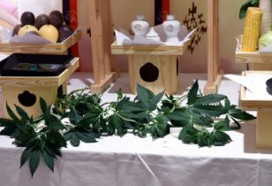 Met een bijzondere shinto ceremonie opende Paul de Leeuw de nieuwste expositie in het Hash & Marihuana Museum in Amsterdam die in het teken van hennep in Japan staat.