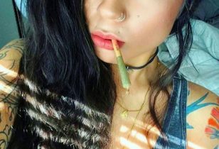 Sharmella heeft een toffe joint-houder ring zodat ze joints kan draaien en roken tegelijk