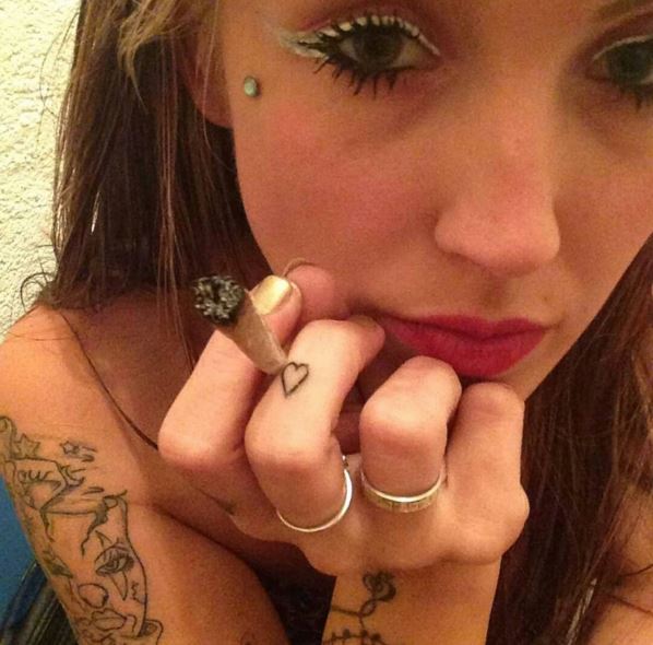 Candy heeft een bong in haar hand, als je lang genoeg kijkt dan zie je hem 😉