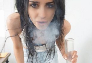 Cherry weet wel raad met een lekker kush in haar bong, zoals ze hier bewijst met een mega-rookwolk om U tegen te zeggen