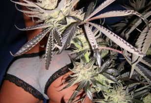 Bij gebrek aan buds aan de planten, checkt Monique maar even hoe het met de butts van haar vriendin staat