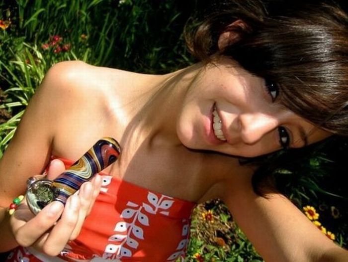 Sharon is blij want ze heeft puur roken in een wietpijpje ontdekt, veel lekkerder en higher bovendien!