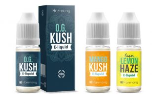 CBD verdampen in een e-sigaret is dus een zeer effectieve en snel werkende methode van inname. Alleen smaakt CBD op zichzelf niet erg lekker. Net als THC heeft pure CBD namelijk geen smaak. Vandaar dat CBD producent Harmony de smaakstoffen (terpenen) uit OG Kush, Super Lemon Haze en Mango Kush aan zijn CBD e-liquids heeft toegevoegd. Het resultaat is een CBD e-liquid die smaakt als een heerlijke joint, maar met het subtiele effect van CBD.