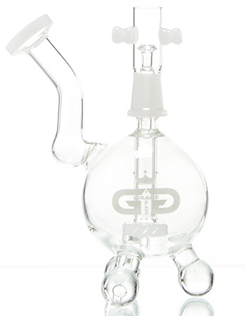 De GG Mini Ball Bubbler zal gegarandeerd veranderen hoe je dagelijks van wiet geniet. De bubbler komt met een bowl voor wiet en een glazen dabnagel voor concentraten dus dan ben je ook meteen klaar voor concentraten én cannabis. De Mini Ball Bubbler ziet er geweldig uit, het is net of hij uit een futuristische onderwaterwereld komt met zijn ronde buik en drie bolle glazen poten. De glazen dabnagel maakt dabben supersmakelijk. Plaats simpelweg wat concentraat op de heet gestookte dabnagel en dek hem af met de meegeleverde bowl om vervolgens alle dabdampen naar binnen te zuigen. Rook of damp gaat door de diffuser naar beneden en wordt in vele kleine belletjes door het water gekoeld. Hij wordt geleverd met grinder, een siliconenpotje voor concentraten en twee verschillende bowls dus voor zowel wiet als concentraten.