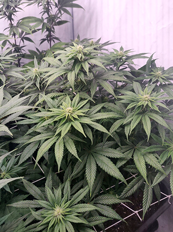 We maken een sprongetje van iets meer dan drie weken en in die tijd is er veel veranderd in de ruimte. In het vorige verslag zijn we geëindigd bij het begin van topvorming. Inmiddels zijn de dames klaar met hun groeispurt en de afgelopen weken zijn de toppen flink gegroeid. Ze ruiken heerlijk zoet en vooral ook heel sterk.