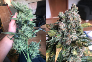 Ik heb alle planten nat geknipt, dus niet eerst gedroogd. Maar waarom nat? Nou, omdat je daarbij minder trichomen verliest, maar bovenal omdat het super voelt om je oogst gewoon lekker klaar te hebben. Dan kun je het afsluiten …én verder kweken 🙂