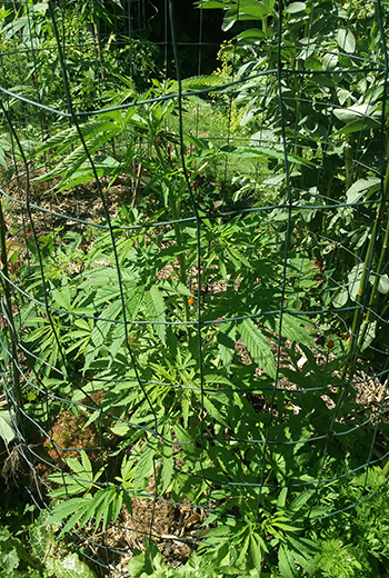 Ik heb besloten dat ik de planten niet te hoog wil hebben, en dat ik ze ook niet ga toppen om de hoogte in de hand te houden. Ik ga deze planten om een spiraal leiden zodat ze gewoon doorgroeien maar ik bepaal hoe. Later in het proces zal het duidelijk worden hoe ik het heb gedaan en hopelijk heeft het succes qua opbrengst.