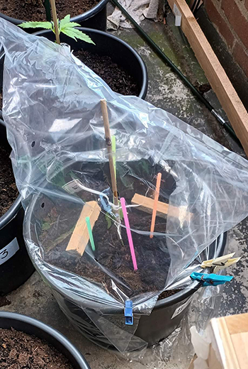 Update 20 juni 2022: Hey redactie en lezers, hierbij een korte update van de plantjes. Vlak voor het verpotten was plantje 5 geknakt. Deze had ik ondersteund met een rietje maar helaas na een dag of zes kwam ik thuis en stond ze er zeer treurig bij. Dat had ik vorig jaar ook, en toen had ik een licht doorlatende zak over de plant getrokken en na 3 dagen was de plant weer happy. Maar helaas heeft dit niet geholpen bij plantje 5; ze heeft het niet gered.