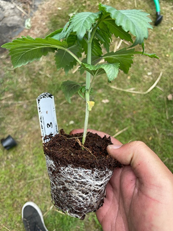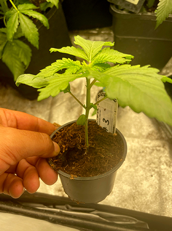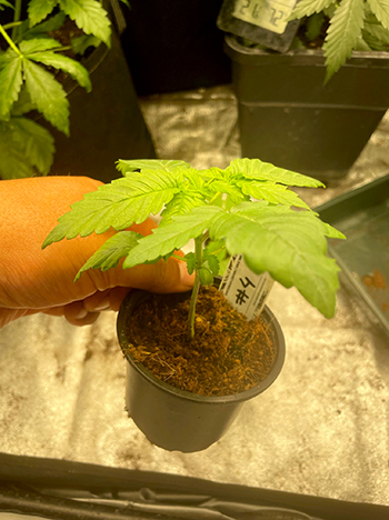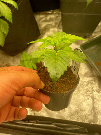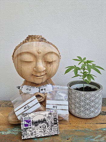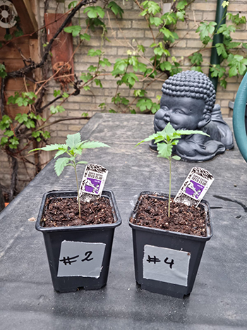 Na een eerlijke loting zijn de nummers #2 en #4 tot leven gekomen. Het ontkiemen in een koffiefilter heeft het meeste succes, voor mij althans. Na twee dagen in het filter is er al een mooi penworteltje zichtbaar, zodat ze de grond in kunnen. Daarna heb ik ze vijf dagen onder een TL-lamp gezet om de dames een goeie gezonde start te geven, en los te laten in de buitenwereld. Ondertussen zijn de eerste drievingerige blaadjes al te zien …wat gaat het weer als een speer 🙂 Groene groeten, Atticanna aka Dave