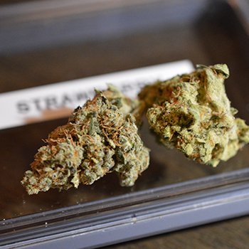 - exotische strains als deze Strawberry OG (€14), een zoete sativa-dominante wietsoort die garant staat voor een relaxte euforie.