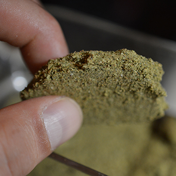 - Gruis en van toppen afgevallen trichomen worden hier gebruikt voor Cookie Skuff (€10) een potente variatie op gebruikelijke hasj