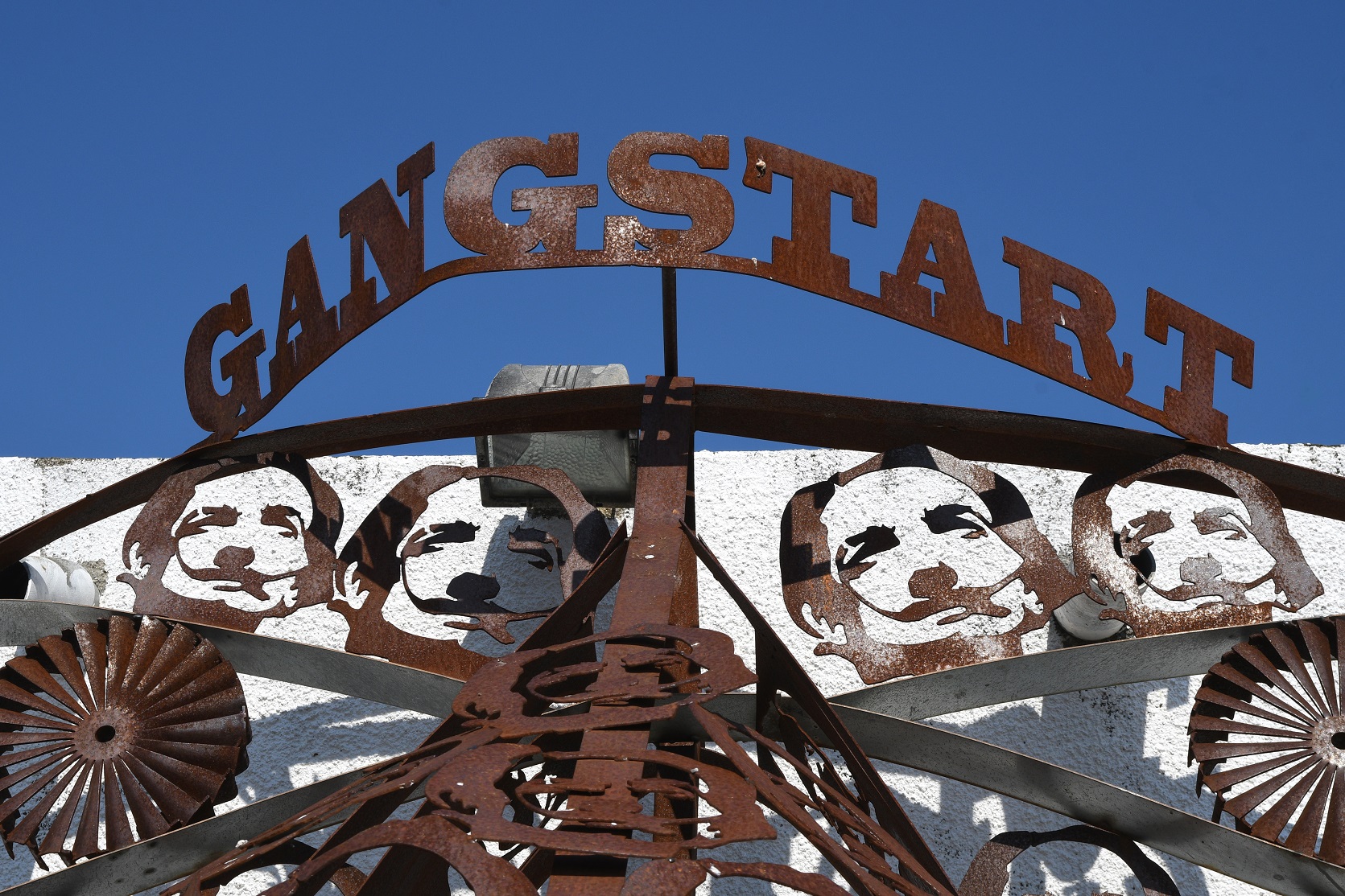 Buiten is al volop te zien; tientallen kunstwerken van oud ijzer, afgedankte apparaten en andere welvaartsresten. Bijna alles is gemaakt door Spi-K-Tri, spreek uit Spie-kaa-trie, een street artist uit de regio. Hij kocht na twaalf jaar leegstand het terrein en alle gebouwen van de wijncoöperatie.