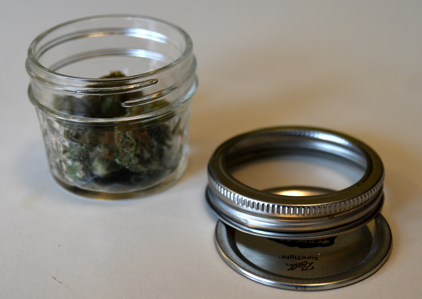X-Tractor heeft buitengewoon fraaie potjes voor concentraten en hasj, van dik glas. Vooral het kleinste formaat gebruik ik vaak, voor kleine restjes hasj. Mijn nieuwste aanwinst is een potje met tweedelig metalen deksel van het Amerikaanse merk Balls, slagzin: Sure Tight. Een sieraad op de koffietafel.