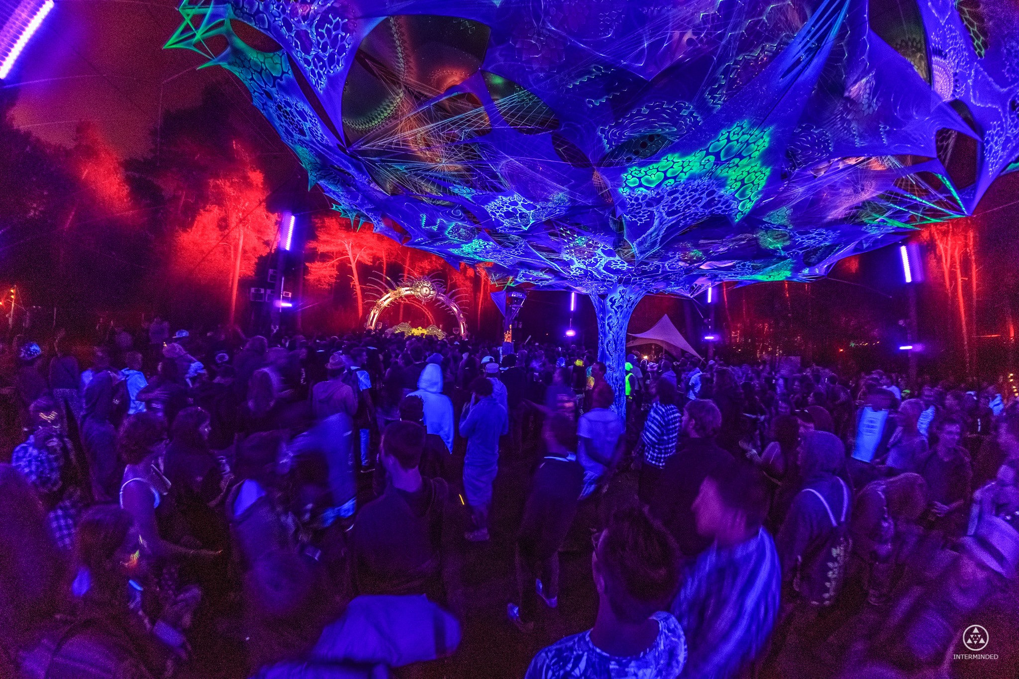 Na het vallen van de nacht, bewoog het enorm diverse publiek zich als een vrolijk oermens voort, terwijl menigeen oplichtte onder de blacklight lampen.