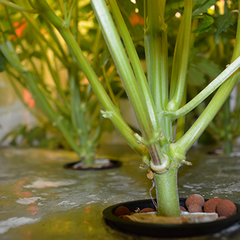 Hoogste tijd om ook even een kijkje in het wortelreservoir te nemen, dat kan nu nog nét. Kan ik het ook meteen even hebben over de voeding, en de waardes. De planten drinken om te beginnen dagelijks 3 tot 4 liter water met voeding. De pH-waarde ligt nog steeds tussen de 5,8 en 6,0 en de EC-waarde is 1,9 tot 2.