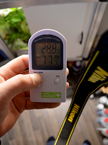 Verder geeft mijn Min/Max thermo- en hygrometer aan dat de laagste temteratuur en luchtvochtigheid deze week 17,8 graden en 49 procent was. Op het heetste moment was het 28,8 graden en de maximale luchtvochtigheid is deze week 77 procent geweest. Het is maar dat je het weet 😉