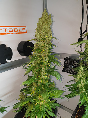 Het is inmiddels – je voelt hem aankomen – de elfde week van de kweek en de achtste week van de bloeifase van de Critical Orange Punch en de drie Frisian Ducks. De toppen zijn stuk voor stuk dik en opgezwollen en het einde nadert voor hun levens in de CNNBS G-Kit XL. Nog een paar dagen en dan mag ik weer knippen; een mooi vooruitzicht met zulke dikke dames in mijn binnentuin.