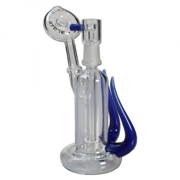 De glazen ‘Blaze’ oliebong is een prachtig instapmodel die voorzien is van een nail van zuivere quartz vanwaar je de damp naar beneden zuigt door de douchekop diffuser heen, alwaar het door het water gekoeld wordt. Houdt de bong vast aan een of alle twee de stijlvolle blauwe hoorns en laat hem niet uit je handen vallen nadat je die dabs hebt gedabd!