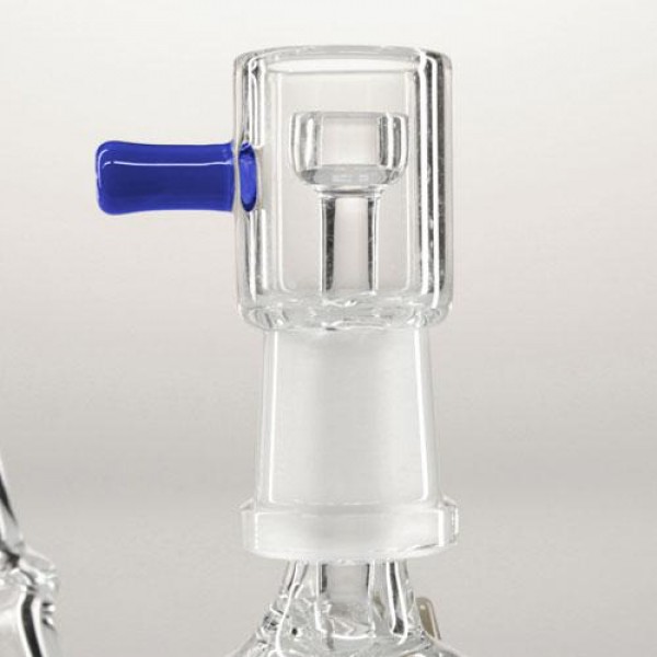 De glazen ‘Blaze’ oliebong is een prachtig instapmodel die voorzien is van een nail van zuivere quartz vanwaar je de damp naar beneden zuigt door de douchekop diffuser heen, alwaar het door het water gekoeld wordt. Houdt de bong vast aan een of alle twee de stijlvolle blauwe hoorns en laat hem niet uit je handen vallen nadat je die dabs hebt gedabd!