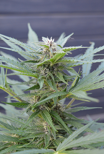 Over Autoflower #5 valt ook wel iets op te merken, en dat is haar dikke knuppel van een hoofdtop. De hoofdstam eindigt namelijk in één volvette top ter grootte van een blikje cola ongeveer. Een indrukwekkende ‘cola’ dus, al bevat de top net als veel autoflowers ook aardig wat blad. Nou, voor wietolie of de verdamper maakt dat helemaal niets uit hoor, daar roef je niets van 😉