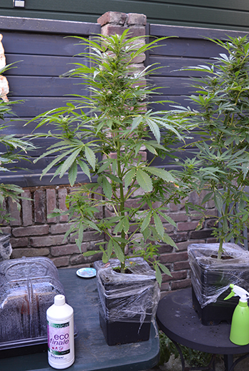 Zonder gekheid. Ik hoop natuurlijk ook dat de wereld snel van het virus af is, maar ik heb een fijne vakantie gehad. De oogst uit mijn kweekkast (24k Gold van DNA Genetics) was droog en zat veilig en luchtdicht opgeborgen in weckpotten. Alleen stonden buiten nog wel de vijf mystery CNNBS Autoflowers, en die waren bovendien flink verwaaid, zoals je misschien nog weet van mijn laatste verslag. Inmiddels gaat het gelukkig een stuk beter met ze, en staan ze allemaal vol in bloei. Ik zal ze één voor één met je doornemen, maar kijk eerst even hoe ze allemaal gegroeid zijn.