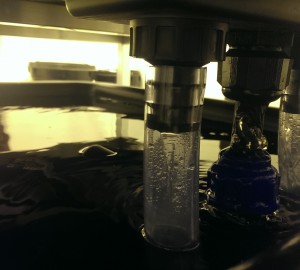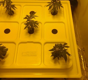 De pomp die in het water ligt pompt 24 uur per dag continue voedingswater naar 4 sproeiers die de worteltjes rijkelijk voorzien van water met voeding. Dit sproeisysteem zit geintegreerd in het deksel van het systeem, waar ook de netpotjes in staan. De pomp reinigt het water door middel van een ingebouwde zeef dus dat is ook makkelijk. Hier zijn de eerste foto’s van de plantjes.