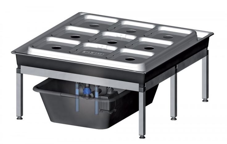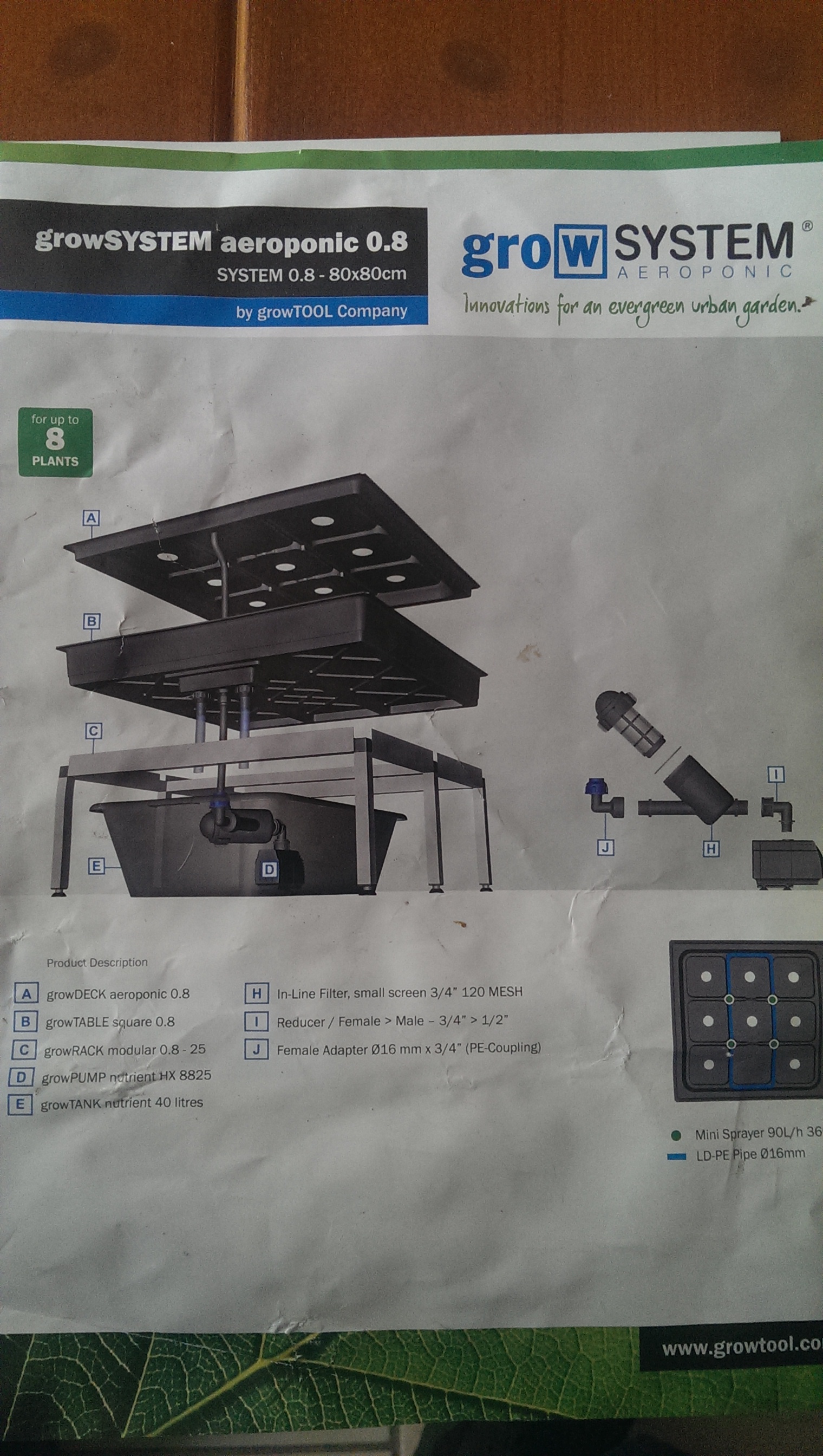 Het systeem wat ik ga gebruiken is een zogenaamd aeroponic kweeksysteem. Net als in de bubble bucket, staan de planten in dit systeem niet in een medium. De wortels hangen direct in een luchtkamer en worden continu beneveld met voedingsoplossing. Ik heb de growSYSTEM aeroponic 0.8, dat een oppervlakte heeft van 0,8 vierkante meter. Er kunnen 8 planten in dit systeem, maar ik test het systeem met 5 planten. 5 Power Planten welteverstaan.