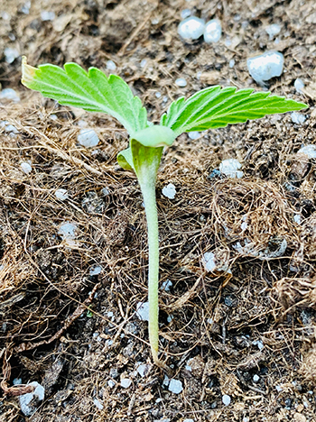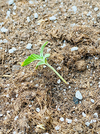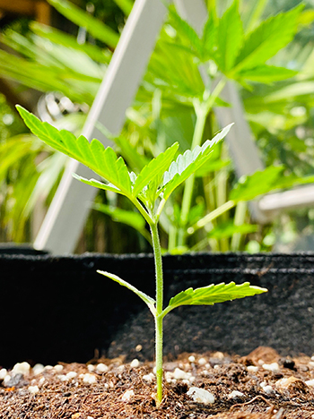 In mijn vorige verslag kon je al lezen dat de start in de koffiefilter veelbelovend was. Als zaailing waren ze helaas wat minder enthousiast. In tegenstelling tot de eerste kweekronde heb ik de kiemen deze keer direct in de eindpot geplaatst. Een 27 liter plantenzak met Plagron Growmix en Biotabs Silicium Flash in de mix. Plus een kuiltje zaai- en stekgrond voor een rustige start.