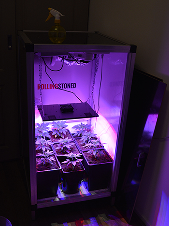 Nu de Night Queens eenmaal droog en wel gewogen zijn, stort onze groene kweekdokter zich volledig op zijn zomerkweek; negen Gorilla Glue planten onder de nieuwe Hans Panel ledlamp. De jongedames zijn vorige week verpot dus de kweek begint nu pas echt.