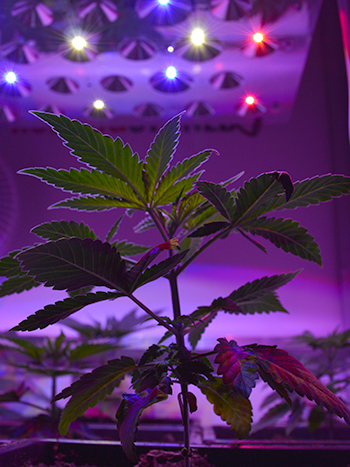 Ik bedoel daarmee dat de groei wat langzamer verloopt dan onder de HPS. Er is minder verdamping omdat de led haast geen stralingswarmte produceert en ik hoef dus ook minder vaak water te geven. Let daar goed op wanneer je van HPS op led overstapt, want je plant drinkt lang niet zoveel water. Om mijn gorilla-dames toch wat bij te voeden, besproei ik ze twee keer in de week met bladvoeding (BioQuant Foliar).