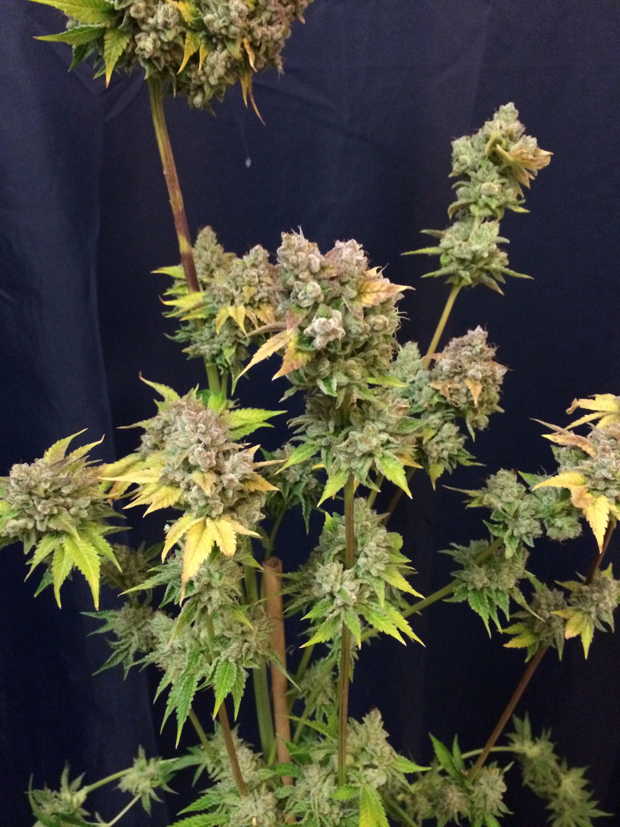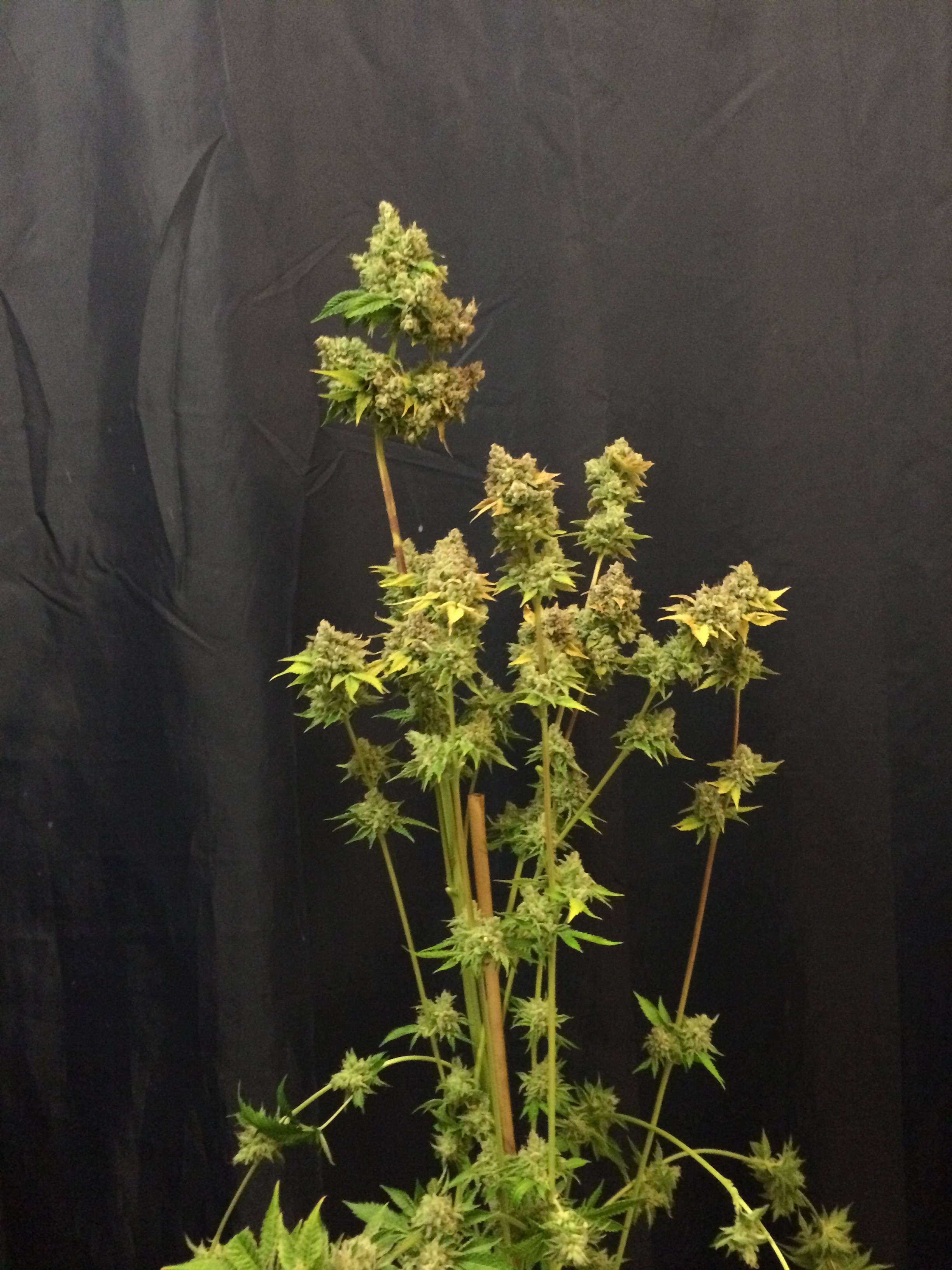 De Tangie planten verschillen wel heel erg van geur. Ik heb drie planten bij die echt een heerlijke citroen-/mandarijn achtig aroma en geur hebben, zoals ook in de beschrijving van deze soort staat. Maar ik heb er ook Tangie planten bij die helemaal NIET naar citroen ruiken. Deze hebben ook een lekkere geur, maar niet zo fruitig maar eerder ‘fuely’ (=kush-achtig, licht naar benzine). De buds zijn typical sativa buds met lang uitgerekte sativa-kroontjes, maar heel luchtig gegroeid. De toppen zijn helemaal niet compact en de Tangie was best veel werk bij het oogsten en knippen omdat ze naast de toppen ook aardig wat bladeren droeg.