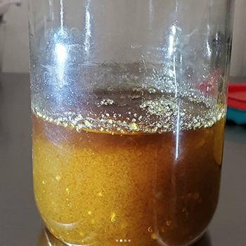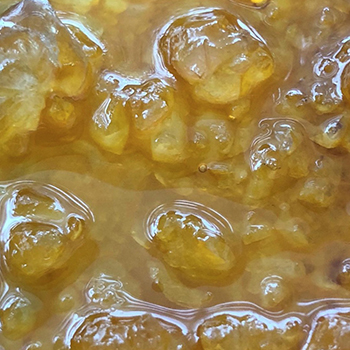 3: Hierna doe je het concentraat, terwijl het nog zeer plakkerig en enigszins vloeibaar is, in een afgesloten glazen potje. Dit potje bewaar je bij een temperatuur boven kamertemperatuur, zodat de THCA-kristallen kunnen vormen. Dat duurt twee tot drie weken, en in principe net zolang tot je tevreden bent over de gevormde kristallen. In essentie laat je het butaan op deze manier héél langzaam uitdampen.