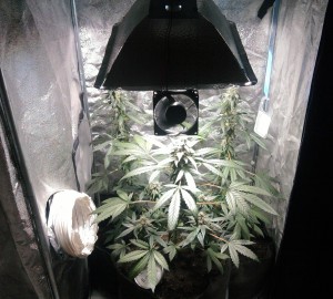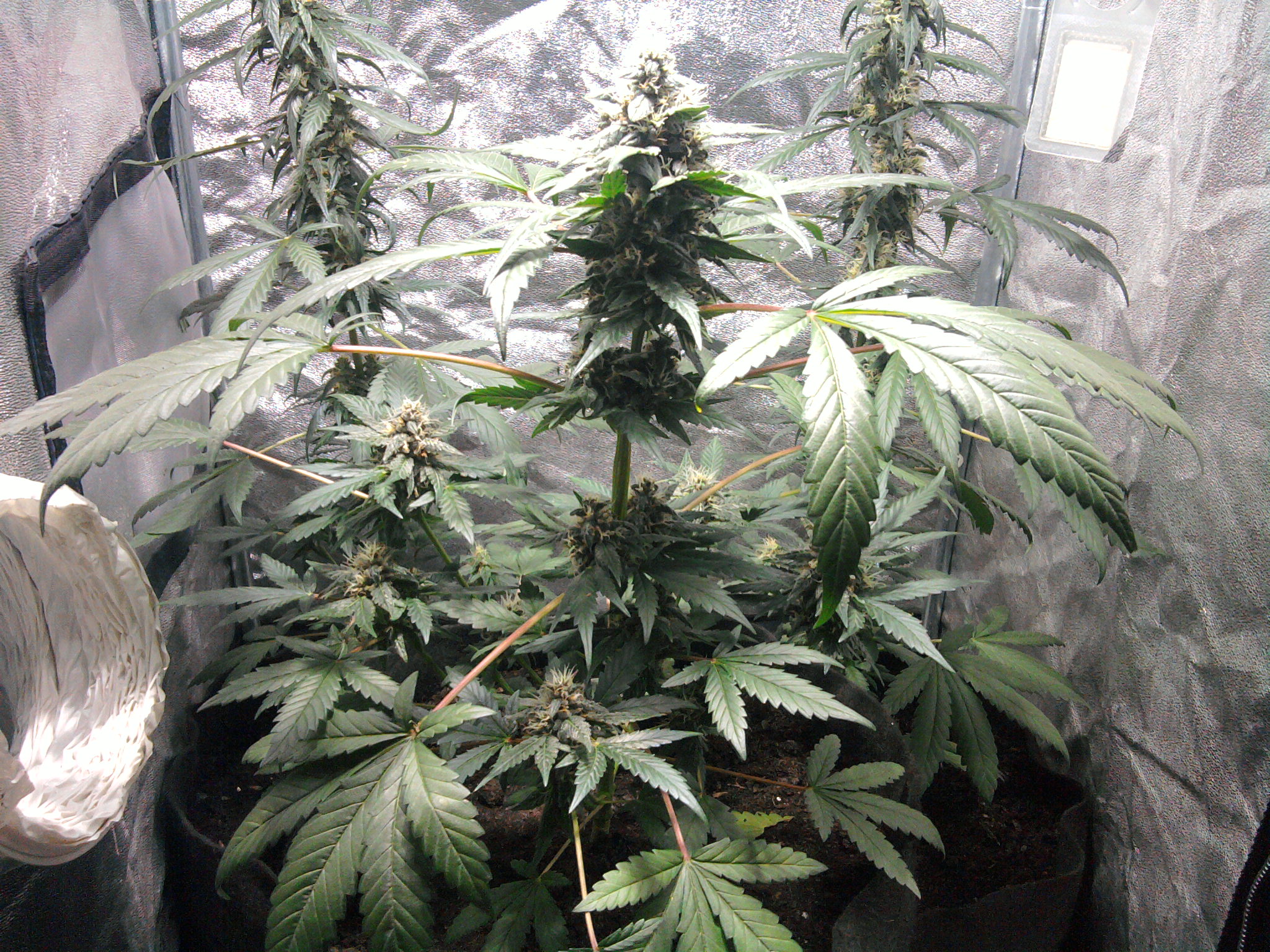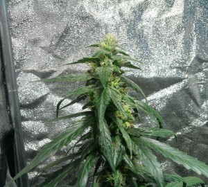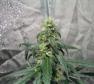 Ik ben blij en wederom vereerd om jullie weer te mogen verblijden met wat foto’s van mijn drie KillingKush planten. Zoals gewoonlijk heb ik voor de foto’s weer even de metaal halide lamp in het armatuur geschroefd. Dat geeft een veel mooier en natuurgetrouw beeld als het rode licht van de HPS. De kweektent die ik gebruik is compleet ingericht en komt met deze metaal halide lamp voor de groei, en de HPS lamp voor de bloeifase, waar mijn planten nu al 4 volle weken in zitten. Gisteren was het de eerste dag van de vijfde bloeiweek.