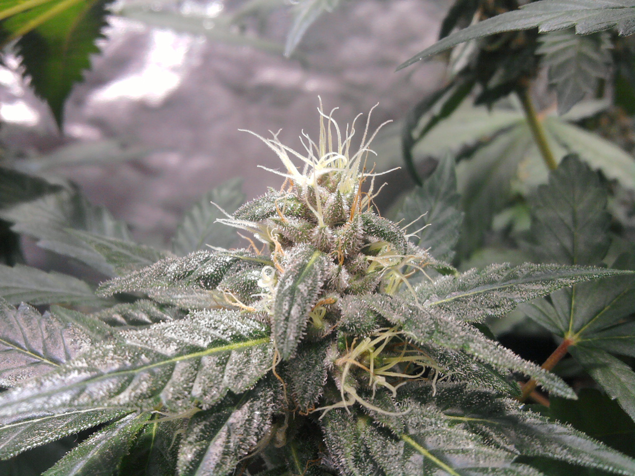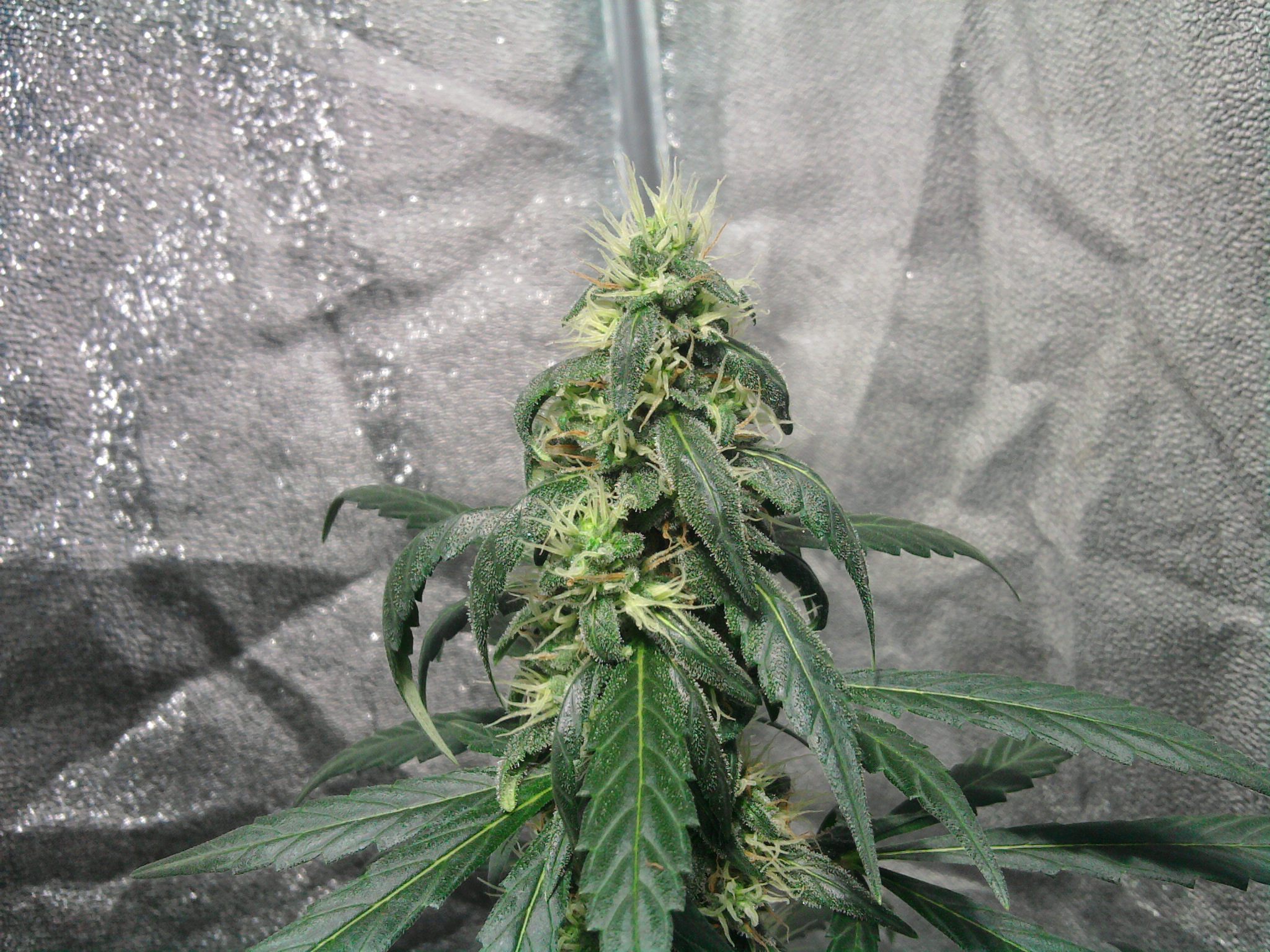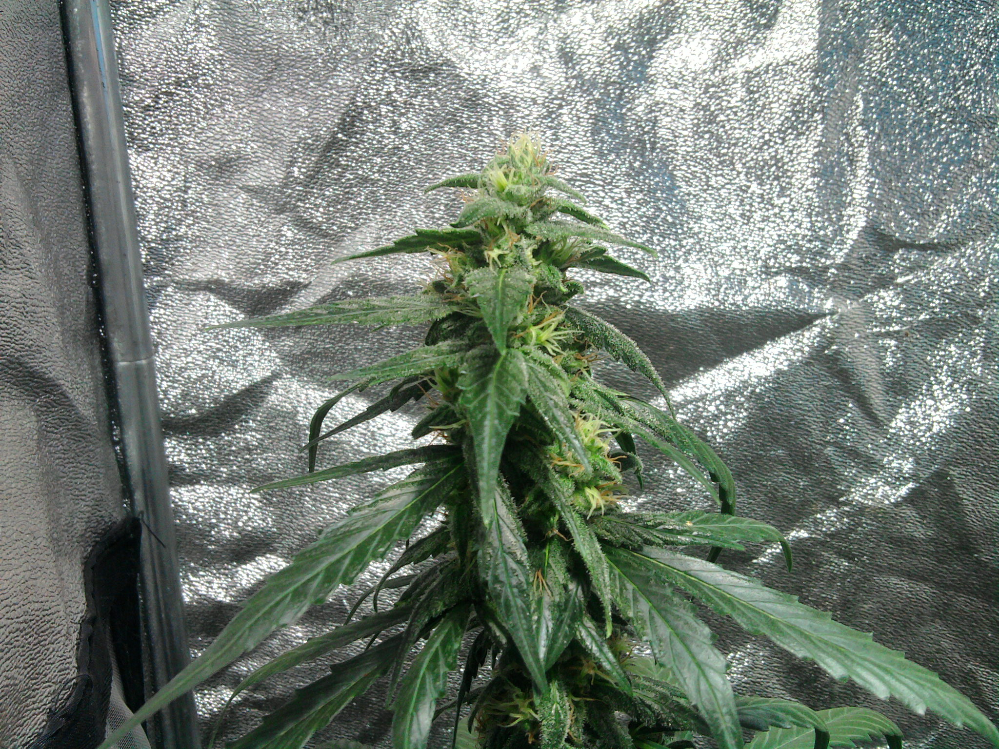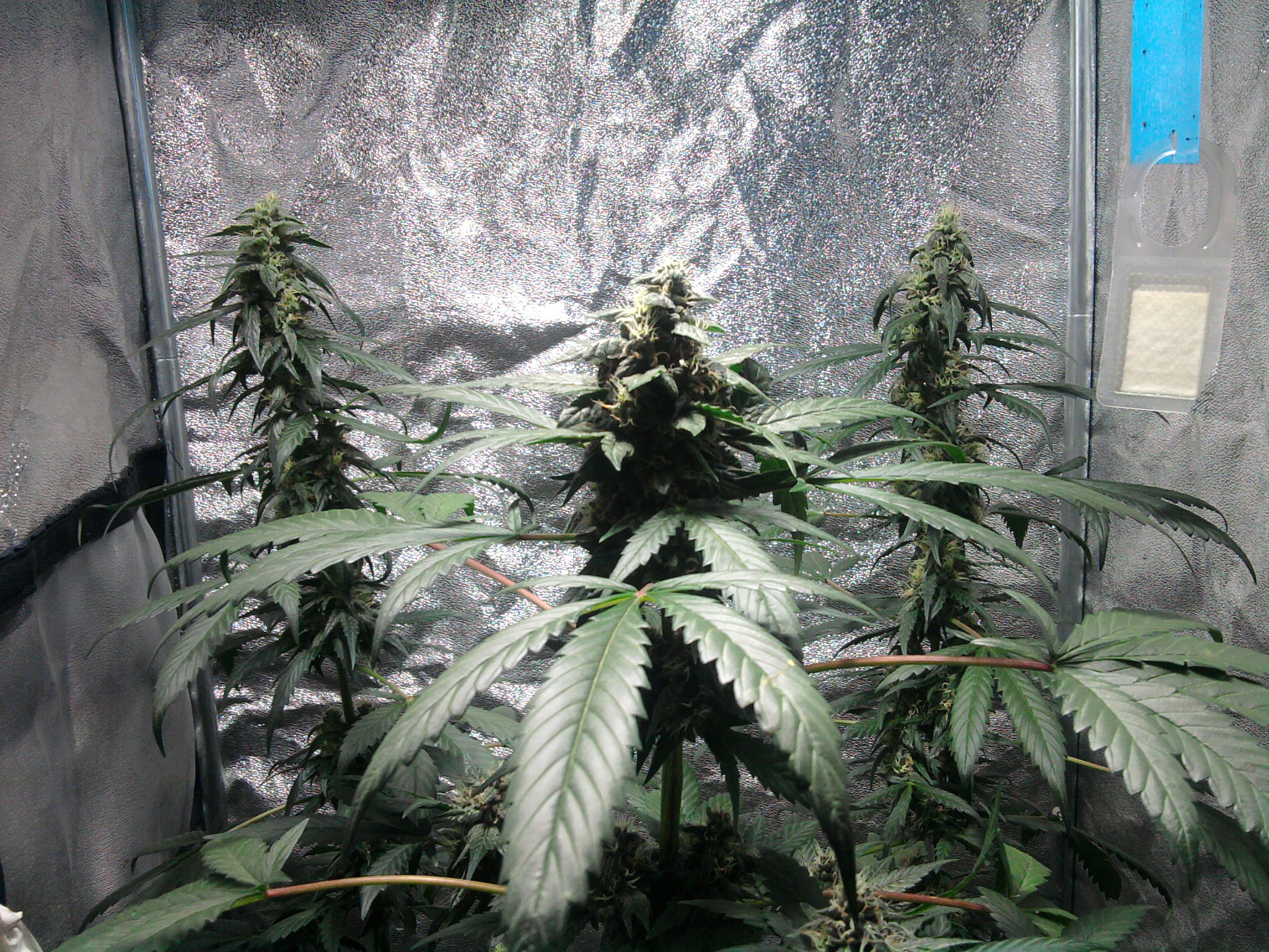 Ik ben blij en wederom vereerd om jullie weer te mogen verblijden met wat foto’s van mijn drie KillingKush planten. Zoals gewoonlijk heb ik voor de foto’s weer even de metaal halide lamp in het armatuur geschroefd. Dat geeft een veel mooier en natuurgetrouw beeld als het rode licht van de HPS. De kweektent die ik gebruik is compleet ingericht en komt met deze metaal halide lamp voor de groei, en de HPS lamp voor de bloeifase, waar mijn planten nu al 4 volle weken in zitten. Gisteren was het de eerste dag van de vijfde bloeiweek.