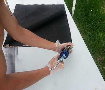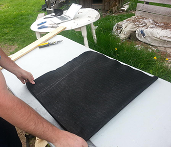 Vouw het worteldoek dubbel zodat een vierkant ontstaat en naai of lijm de twee zijkanten dicht zodat een soort zak ontstaat. Wanneer je lijm hebt gebruikt moet je deze eerst laten drogen, maar als je de potten genaaid hebt kun je meteen verder gaan. Draai de zak binnenstebuiten en vouw de twee hoekpunten aan de binnenkant tegen elkaar aan. Voila, je hebt zelf een slimme pot gemaakt!