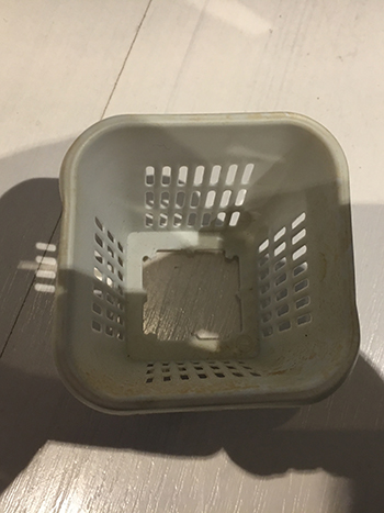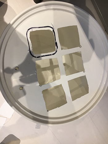 In dit voorbeeld maken we een bubble cloner met ruimte voor 6 stekjes. Met hetzelfde gemak maak je echter ruimte voor wat meer stekken, voor het geval er eentje bij is die niet wil wortelen. We maken dus zes gaten in de deksel van de emmer, waar de kleine netpotjes precies inpassen. In dit geval maken we vierkante gaten omdat we ook vierkante netpotjes gebruiken. Als je ronde netpotjes hebt maak je uiteraard ronde gaten in het deksel. Daarnaast maken we met een boor drie kleine gaten in de deksel, voor de slangetjes van de bruisstenen en de aquariumverwarming.