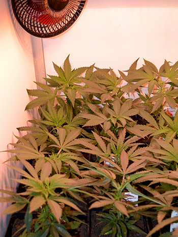De timing van de komst van de SANlight was eigenlijk perfect, want mijn indica’s waren ondertussen wel toe aan het bloei-lichtschema. Ze bedekken het totale kweekoppervlak, en zullen voordat ze daadwerkelijk in bloei gaan, nog een heel stuk groeien. De planten genieten nu dus niet alleen van een nieuwe kweeklamp maar ook van een nieuw lichtschema.