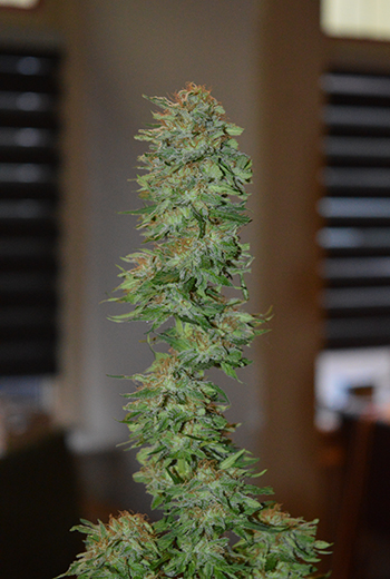 Het is zover. Ik ben begonnen aan de oogst van mijn buitenplanten, die zoals je misschien weet al sinds 20 september vaker binnen dan buiten staan. Dat wil zeggen, ik ben begonnen om de dame die het verste is (#25 Dynamite) te knippen. Ik laat de planten daarbij in dit geval gewoon in hun potten staan, en knip de toppen dus voor het drogen in dit geval.