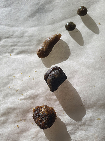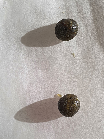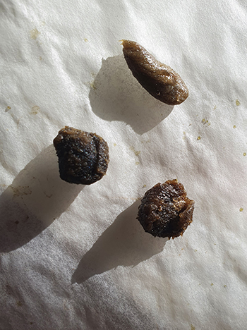 Laat ik maar eens met goed nieuws beginnen, want het gaat hier niet allemaal van een leien dakje zoals dat heet. De hasj die ik vorige week gemaakt heb plakt als de neten, ruikt alsof de plant postuum nog even een verse top onder mijn neus drukt, en smaakt precies zo. Ik ben nog niet verder gegaan met ronde drie, vier en vijf in het ijswater maar ik heb de hasj na het drogen wel verzameld en gefotografeerd. De opbrengst lijkt karig maar de kwaliteit is geweldig. Maar ja, zo gaat dat met hasj: de kwaliteit is altijd omgekeerd evenredig met de kwantiteit. En andersom.